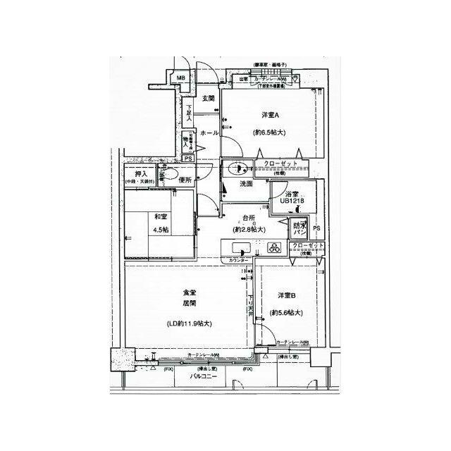 | 専有面積 | 壁芯 70.80㎡ | バルコニー | 12.73㎡ |